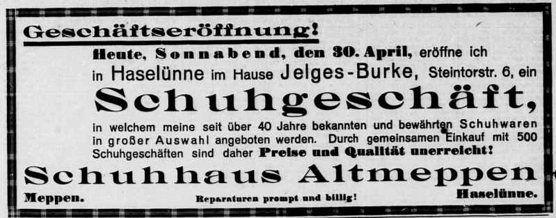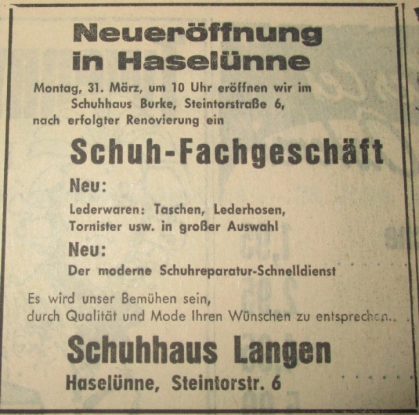 Auf der frei gewordenen Fläche des vorherigen Schuhgeschäftes, Steintorstraße 11, wurde nach dem Auszug des Schuhhauses Langen ein "Quick-Schuh"-Geschäft eröffnet. Hier wurden von nun an preiswerte Schuhe angeboten.